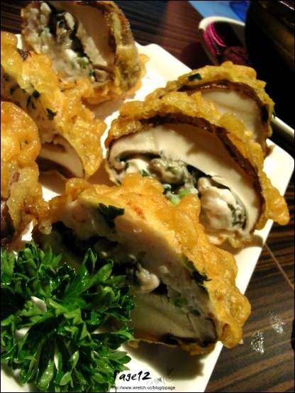 阿厚蚵嗲$120 一個超大的香菇去蒂之後在下面包鮮蚵,再加一層花枝漿,最外面再裏上麵皮油炸