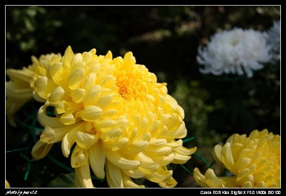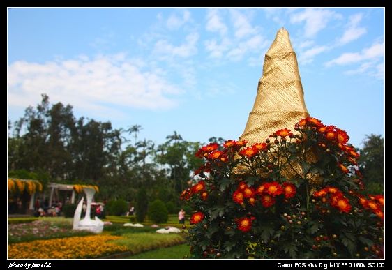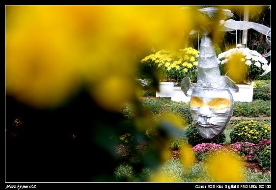 我沒忘記老師的拍花要點,只是,我找不到像鬱金香和荷花一樣的主體,我的攝影眼,脫窗了,SORRY,所以拍了一堆好像旅遊照的東西,超傷心的,不過話說因為菊花是人工的,用支架架著,一朵朵沒有什麼擬人法可以幻想 <<<<<<<<<<你看看拍不好又要怪花了唉