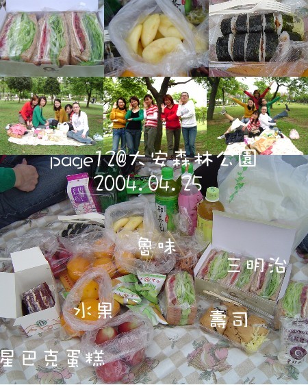 下面這張照片就是我們去年的勝況,就在大安森林公園,像個小婦人一樣,舖著毯子,在草地上野餐,只是塑膠袋太多破壞美感,吃飽還玩無聊自拍搞笑,所以玩的超開心的,下次還要去