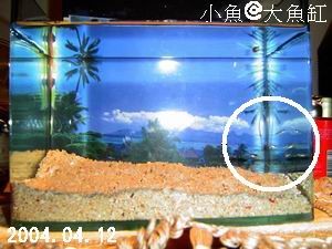 小小的魚,在大缸裡,幾乎感覺不到他們的存在,空洞洞的,我就印了一張風景畫放在後面當背景