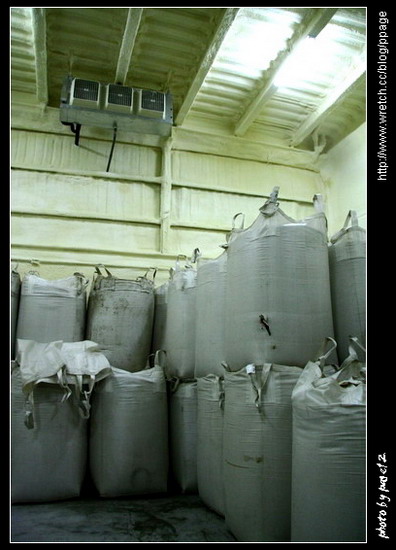 這間是保存米的地方喔,溫度滿低的,進去會冷也,很大喔,那一桶米就有150cm高左右了