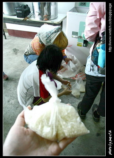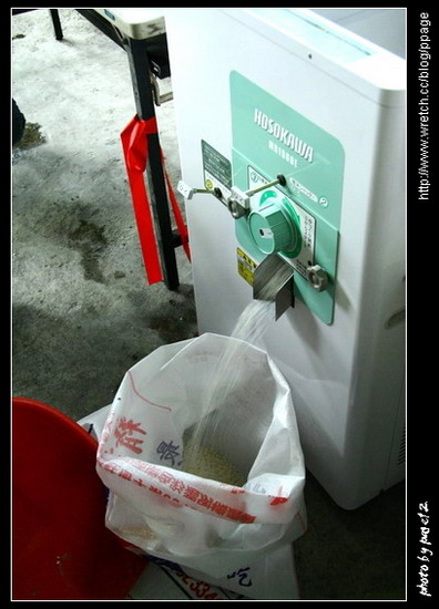 一樓有一台小的碾米機,他們就當場拿了一袋的米碾給我們,哇,超新鮮的啦