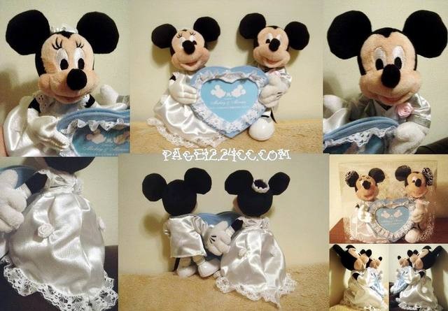 帥氣的米奇穿著銀色的西裝,胸前還有粉色小玫瑰