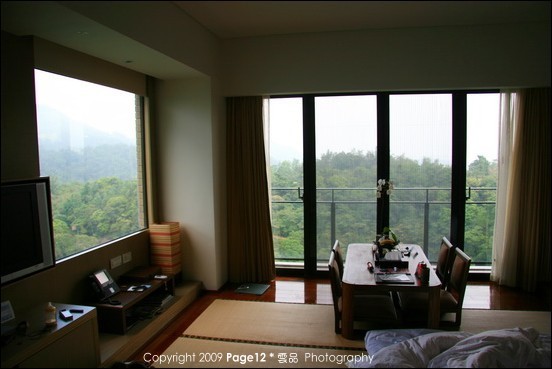 和式房都是在飯店的左右邊間的地方,雖然是山景的,但是他其實是應該算是半湖景吧,有一面可以看到山一面看到湖,窗戶拉開視野還不錯