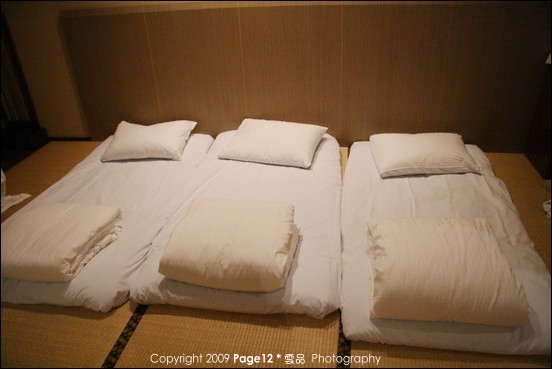 趁我們去用自助晚餐時,他們就來舖床了,三人份,小波吉也有一份,哈哈哈