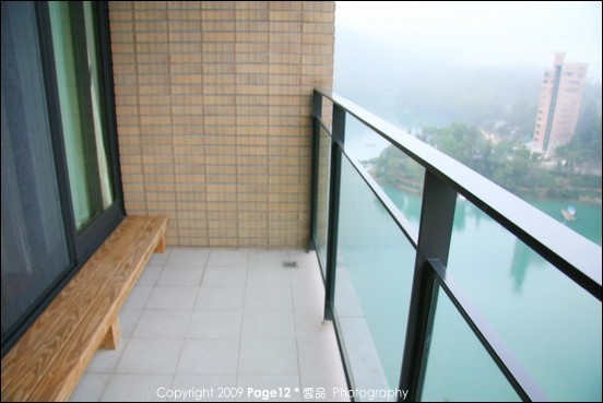 陽台的景色,旁邊還有木條是給我們坐在那賞湖景的嗎,哈