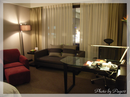 另一個商務房,有獨立的高爾夫球造景的view不會有人出入的陽台,所以可以把窗簾拉起來
