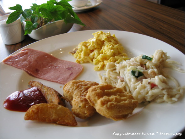 我啊,住飯店最喜歡他附的早餐,雖然有中式稀飯、日式小菜、台式豆漿、港式叉燒包