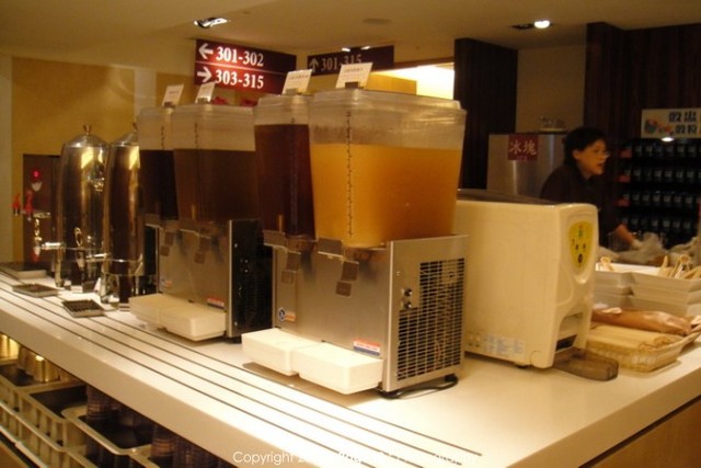 B1的飲料台,有冷飲四種,熱飲二種,後面有沙拉,可素怎麼都沒有我愛喝的奶茶呢~~