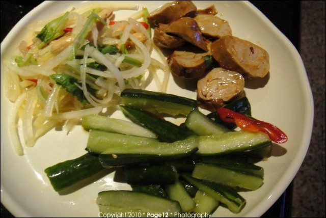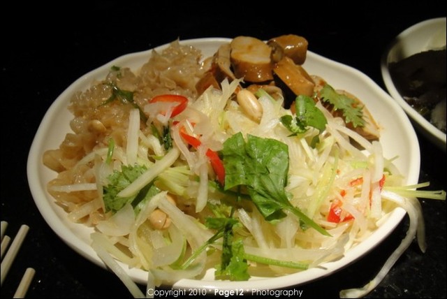 涼拌菜類: 豆干、涼拌銀耳加黑醋,味道滿特別的、青木瓜絲有辣有香喔