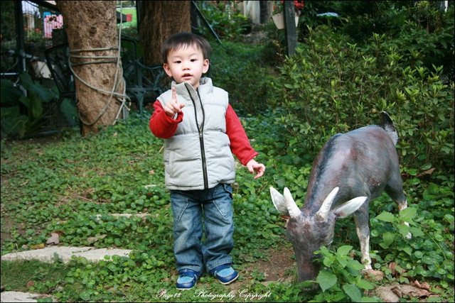 小波吉硬要跟羊一起玩一起照相,叫好久都不肯走,哈