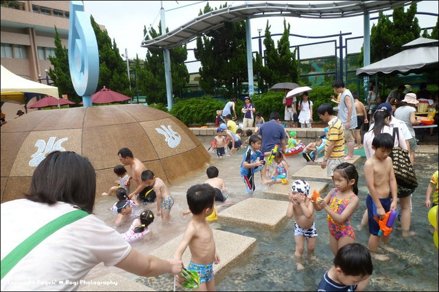 一進去就是這塊親水區~~~ 一大團的人,這區的門票全票是80元今天免費,小朋友依身高收費