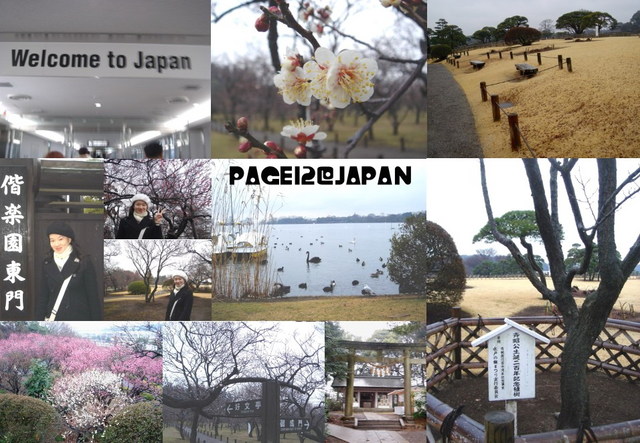 後來我們就坐滿久的車到了水戶的偕樂園,還是有點下雨,快冷死了,溼冷很痛苦,我們也沒帶雨傘,有一個湖還有黑天鵝,裡面不是什麼樂園,而是個像公園那種,有很多種色系的的花,有粉紅色有白色的,但季節還不對,有些花沒有開,只開了一部份,有一片黃色的草地,顏色很特別很漂亮,之後我們又坐車前往晚上的住宿地