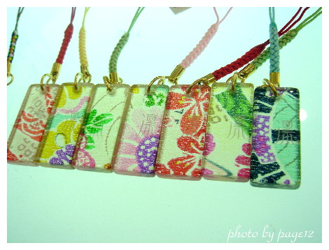 手機掛飾,類似日本和服的布料,壓在塑膠塊裡面,滿特別的,很好看