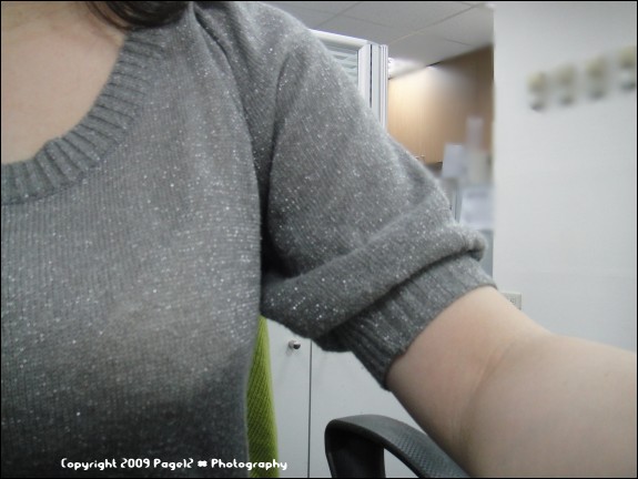 它的領口是U型的呢,而且袖口、領口、下擺是自然雙層捲邊,很好看呢,手感也很好,SOFU果然是舒....服....啦