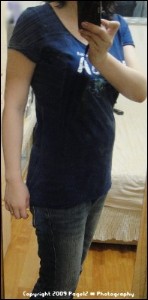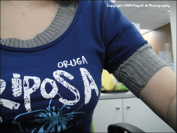 我馬上把T恤套在原來上衣的外面,將將,變的更好看了也,也可以單穿配牛仔褲,反正長版的,怎麼搭怎麼好看啦