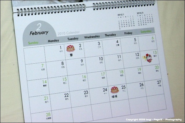 這個月曆也很贊,有農曆有註明除夕那些假日都有在上面![]()