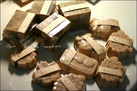 我做的母乳皂有切比較小一點,因為我想多塊一點可以送人,選的是乳油木果皂,1.5kg總共11塊方型-艾草粉花紋處理,8個造型模(羊3和牛2雪人1小葉子2