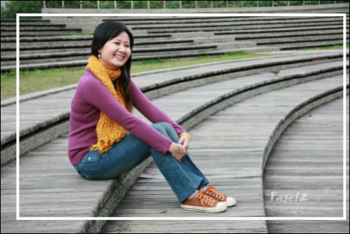 第一:上面一根一根的欄杆不要出來,因為已經有橫條,不要再有直線,太複雜了,拍這張時,我還對手動對焦感到無法適應,老是覺得人霧霧的,但這個笑容我很喜歡,笑的很甜也