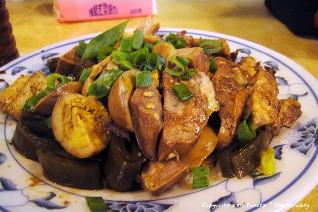 這兒的小菜是最出名的,點了一堆,味道真贊,豬頭皮、魯蛋、海帶、大豆干,都很入味,醬汁也剛剛好
