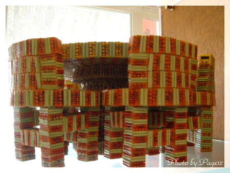 門口處的櫃子上陳列著不少特別的東西,很多都是用四色牌所做成的小動物及小家具