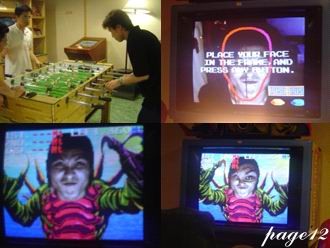 之後就到遊樂場玩,手足球及射飛標還有撞球及電動玩具,都滿有趣的,我們還比賽,還有我也很愛玩的推飛碟的遊戲,我也不知道叫什麼名字,反正就一片圓盤,然後二個人推來推去,推進對面的洞就得一分,那遊戲很剌激,每次玩都覺得很開心,後來我們就上樓去吃魯味,看電視聊天,想想明天的行程,然後就睡覺了