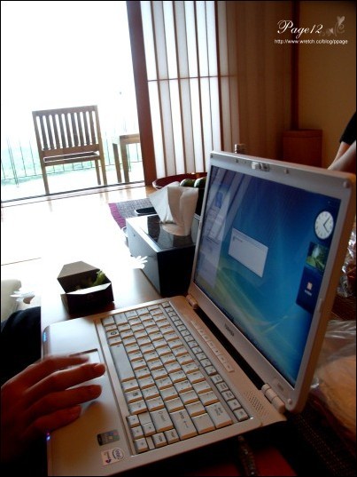 還有有線網路免費提供,Momo還帶了電腦來,分明是來炫的,來渡假泡湯帶什麼電腦,不過我有偷用啦,沒事聊一下