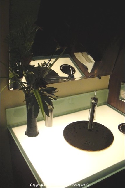 廁所的個人洗手台,風格也是下投射的白色燈光~
