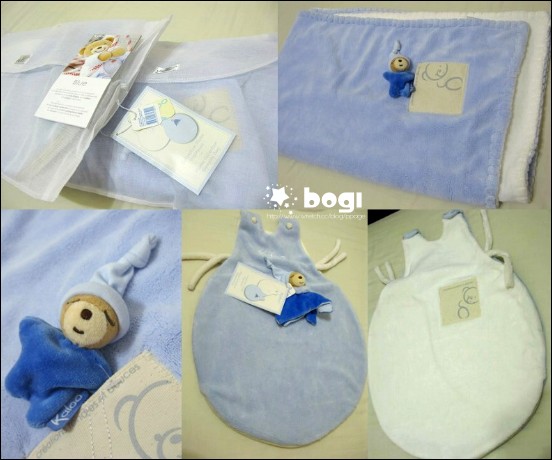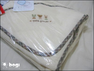 寶寶的被被---阿慧姨姨們一起送的被被及包肚睡袋組,好綿好舒服喔2009.02.03