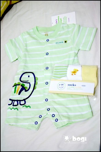 網路亂買的綠恐龍短袖包屁衣x1 白熊GAP連身衣x1,小襪襪x3