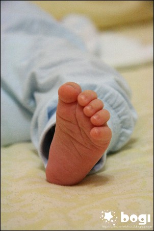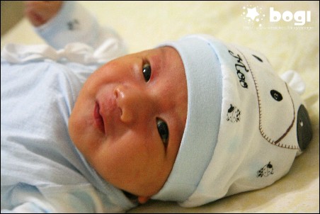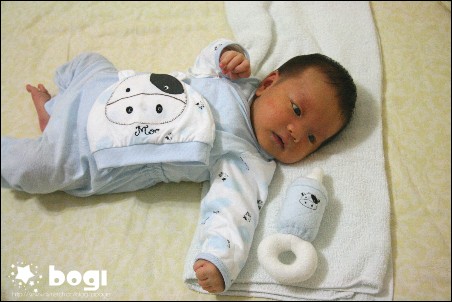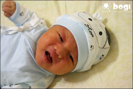 今天小波吉很配合,他有張大眼睛給大家看喔,而且也乖乖的不怎麼哭,不過他還是豆豆臉及黃疸還是很嚴重,還好黃光看不太出來