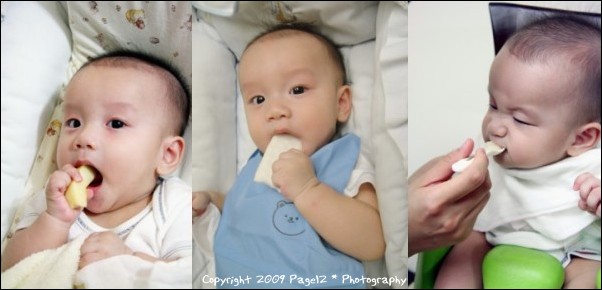 * 吃過米餅-但會全身黏TT或不吃丟地上,我就剝小塊小塊塞給他吃,他會開心吃的津津有味,咬咬咬,但是最多吃一整片的量就不想吃了,米糊吃過幾次也不愛,梨水、蘋果、香蕉泥,吃了都會噁,一付要吐的樣子真傷腦筋,唯一願意吃的棒棒餅,有時也要看他心情啊