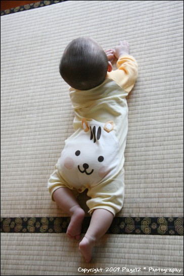 * 會翻過去再翻回來,趴著可以轉360度,拿玩具騙