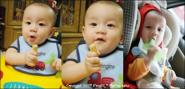 小波吉最愛的是這種味道像營養餅乾的棒棒餅(像石頭一樣硬,但碰到口水變軟),聽說要團購,還滿愛吃的,吃的滿身都是,害我又去買了吃飯衣,哈