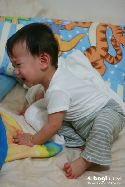 不要說小孩子不懂,其實他都懂,他懂看人臉色,他知道什麼叫不行,他也知道碰碰,他已經很久沒跌倒,但他最近還是摔的黑青,那是因為他太皮,連坐餐椅都要爬出來,還有些是意外,爬在地板沒事也會撞到地板。還有他會用「頭鎚功擊」,對,世足賽將要開打,但小波吉先開了,誰抓他的頭,他就用頭頂,誰搶他手中的東西,他也用頭鎚,還有,他一開心,他也會用頭鎚,我快要瘋了,他有一天拿他正面的頭鎚去撞桌子,結果額頭腫一個大包,隔天黑青,老天爺啊,你說我要怎麼教我的小壞壞啦。