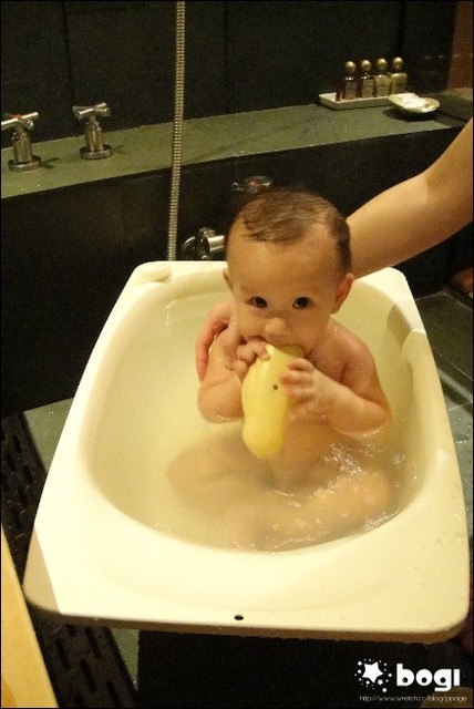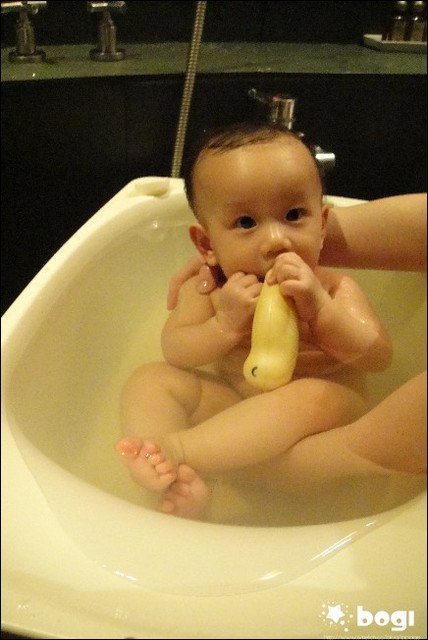 礁溪的寶寶浴盆滿大的,還有附小鴨鴨,給小波吉邊洗邊玩