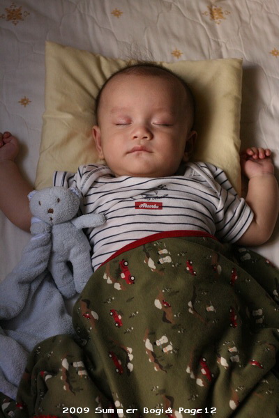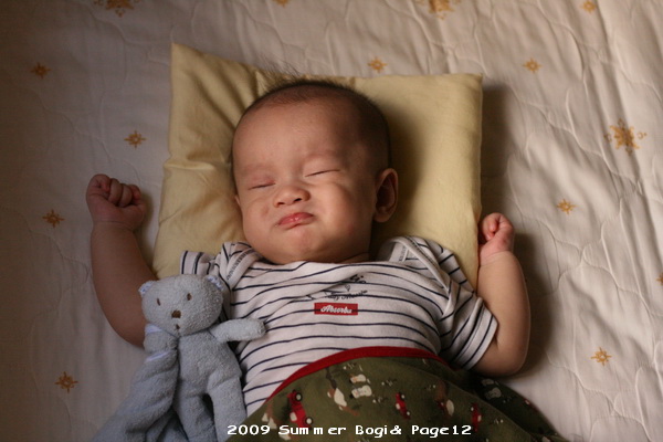 小波吉跟麻麻一樣是大字型睡,但不一樣的是他的手一定要舉起來,吼,都不蓋被被的手