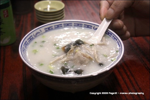 皮蛋瘦肉粥,他的瘦肉是用雞肉做的,滿好吃的,蓋先生點的,吃了一口覺得好贊喔,早知道點這個![]()