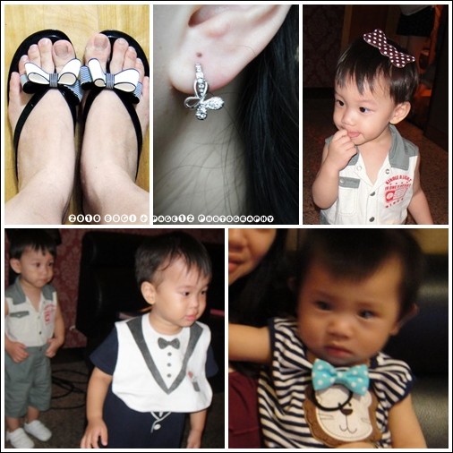 麻麻還買了夾腳蝴蝶結托鞋,還戴了蝴蝶耳環~~