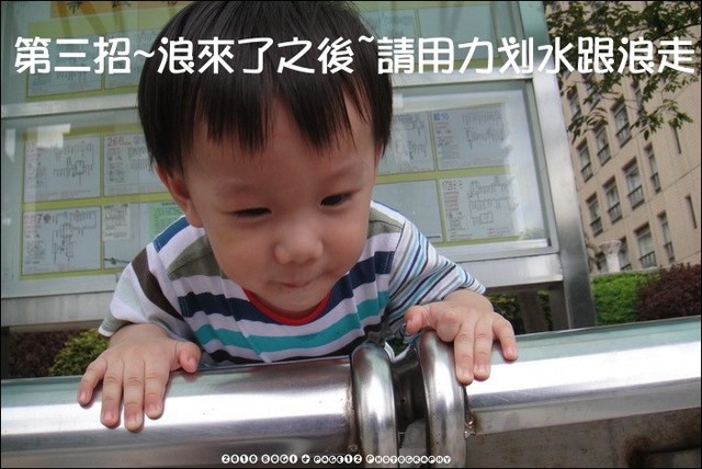 第三招,浪來了之後,當然是拼命死命的划水啊,不然怎麼抓的到浪