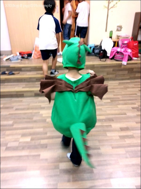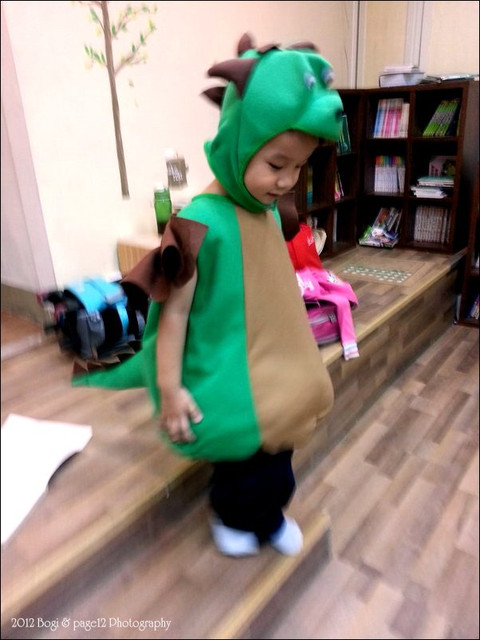 最後回到美語教室,馬上就把恐龍裝給脫了