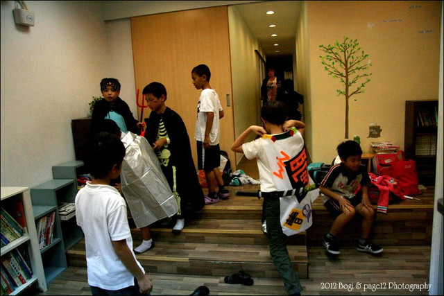 本來沒有地方可以參加萬聖節活動想說算了,錯失好多接二手衣的機會,最後姊姊的美語安親班有辦活動,於是我就上網買了一件新的萬聖服,哈