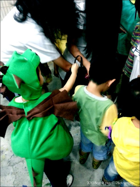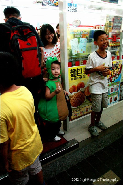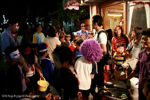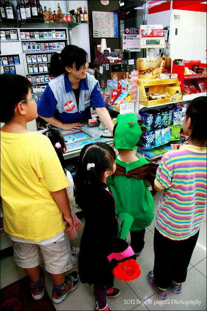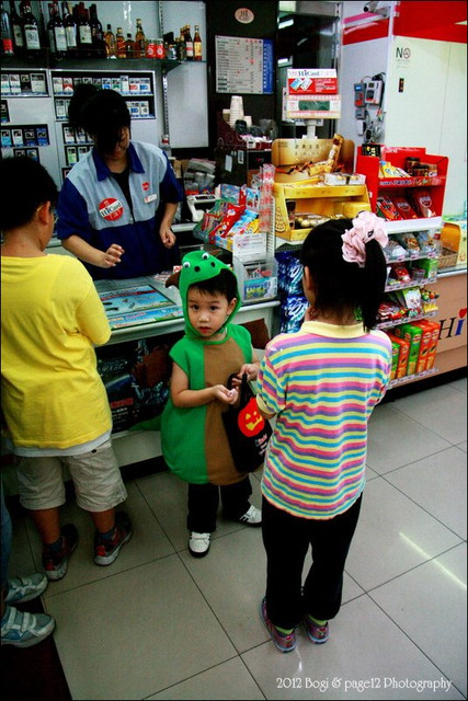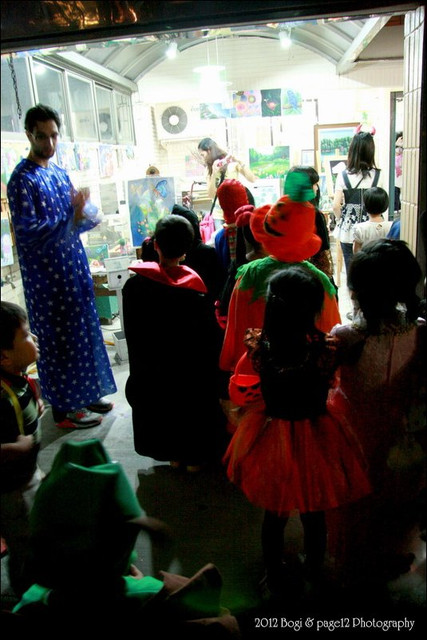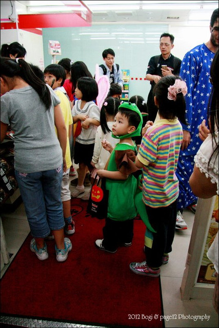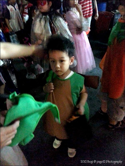先到第一站要糖果,小波吉一直拉著我的手不敢過去,一直到我把他的手拉到糖果袋附近,他才呆呆的停在那等糖果