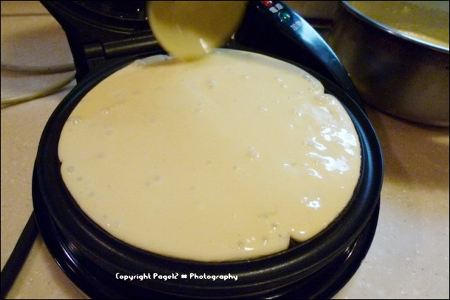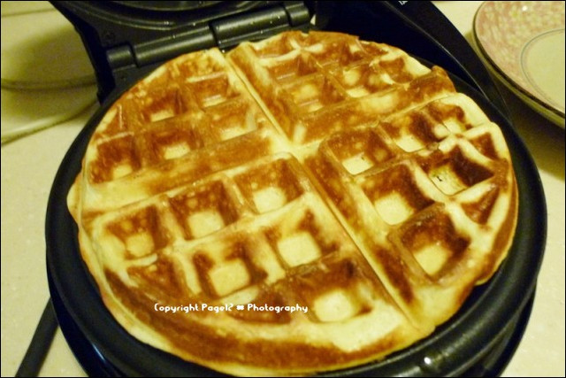 預熱完成後,就把鬆餅醬汁倒進去,別弄太滿會流出來,沒一會兒香氣都來了,好想吃啊口水流下來了