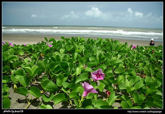馬鞍藤~由於與牽牛花同屬旋花科、牽牛屬的植物,馬鞍藤的花朵跟牽牛花長得有點像,但它長在海濱沙灘上,不像牽牛花纏繞攀爬,而是趴在地上蔓生,向四面八方擴展地盤。馬鞍藤不怕惡劣環境摧折的好本事,可以忍受烈日曝曬、海風吹襲、潮水拍打,並在貧瘠、養分缺乏、含鹽分高的海邊生長。它的名字由來,是因厚厚的葉片長得像馬鞍一樣。