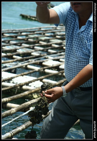 導覽人員還特地停在蚵架邊,拉一串起來給我們瞧瞧