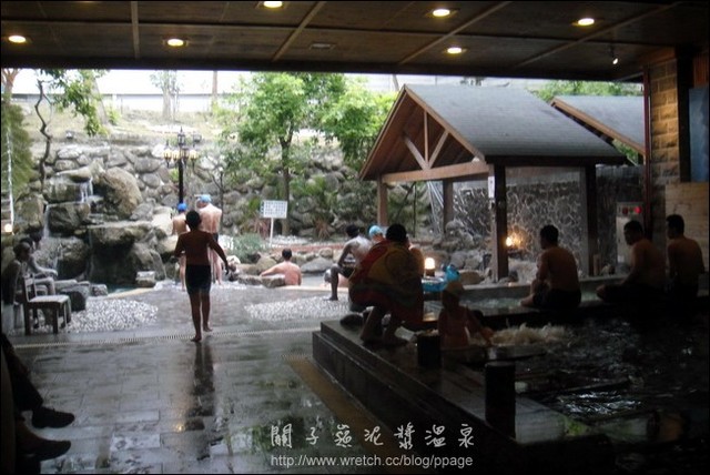 最底是石頭的泥漿溫泉,左邊是冷水池,再來右邊是有藥浴池,再來一整片是spa池