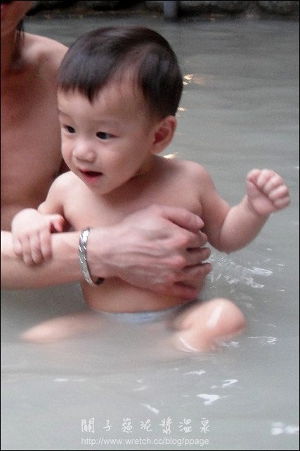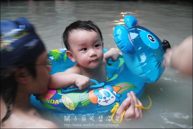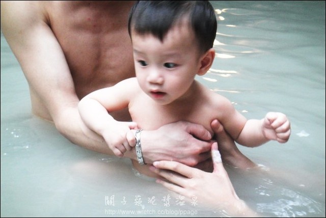 小波吉泡下去都有點怕,一直緊抓著爸爸~