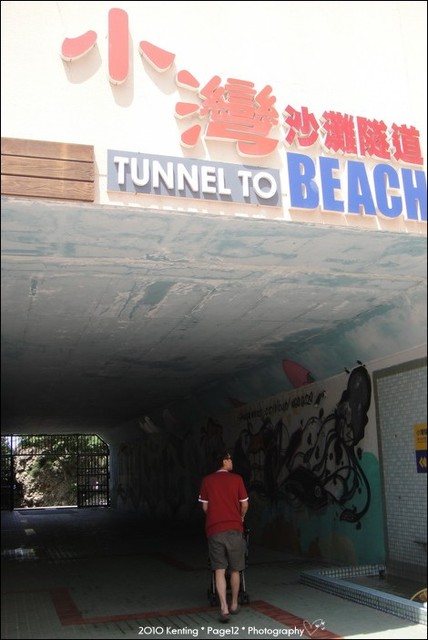 吃完早餐就去散步了,一路經過福華裡面的遊樂場、小賣店,走到底就到了小灣沙灘隧道,久聞這個地方已久,這次終於來了,從凱撒也可以走過來這個小灣沙灘,只是福華自已挖了條隧道直達~還不錯,這個沙灘由二家飯店負責認養