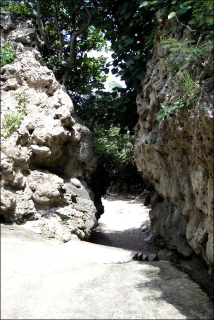 出了剛那個門就可以看到右邊有階梯可以走下去~這邊的景色已經都是珊瑚和一些海邊的植物了~我們往下走,就在階梯上發現了寄居蟹一隻~拿給小波吉看了看又放回去~